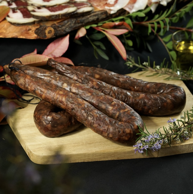 Le figatellu est une saucisse traditionnelle corse à base de foie et de viande de porc, assaisonnée, fumée et séchée. Apprécié pour son goût intense, il se déguste grillé au feu de bois ou cru après affinage. Symbole du terroir corse, il est incontournable en hiver et ravit les amateurs de saveurs authentiques.